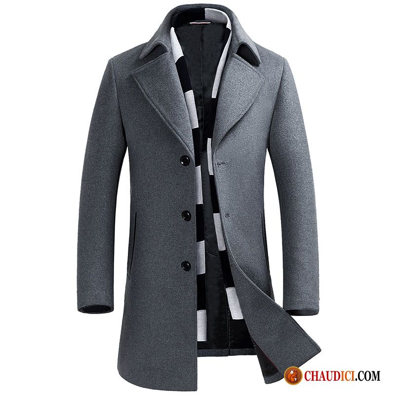 Solde Manteau Homme Épaissir Homme Gris De Laine Manteau