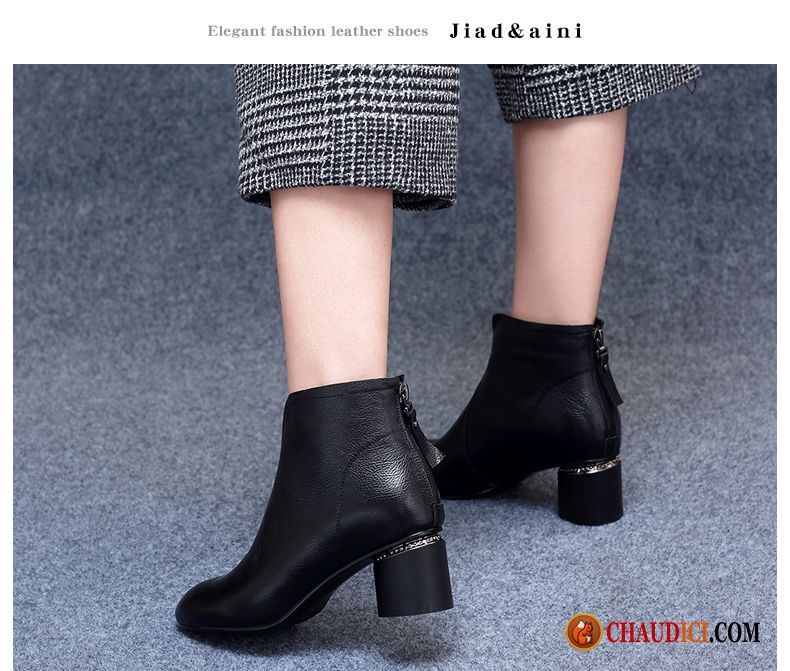 Acheter Bottines Femme Bottes Courtes Épais Plus De Velours Talons Hauts Bout Rond France