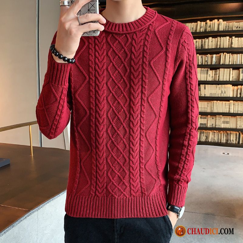 Cardigan Mode Maille Homme Tendance L'automne Hiver Rouge Pull