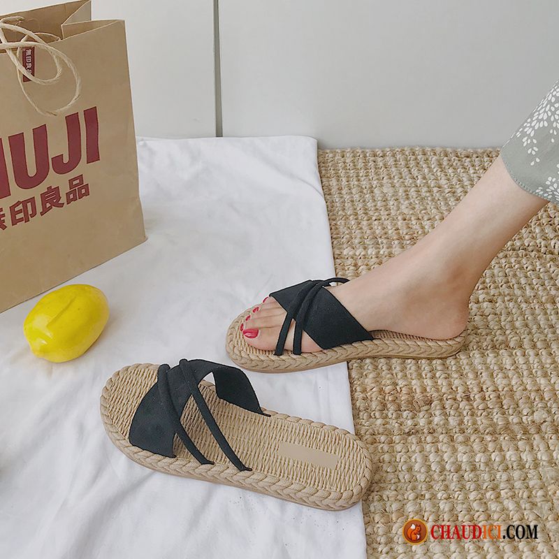 Sandales Femme En Cuir Rose Rome Antidérapant Étudiant Femme Plates