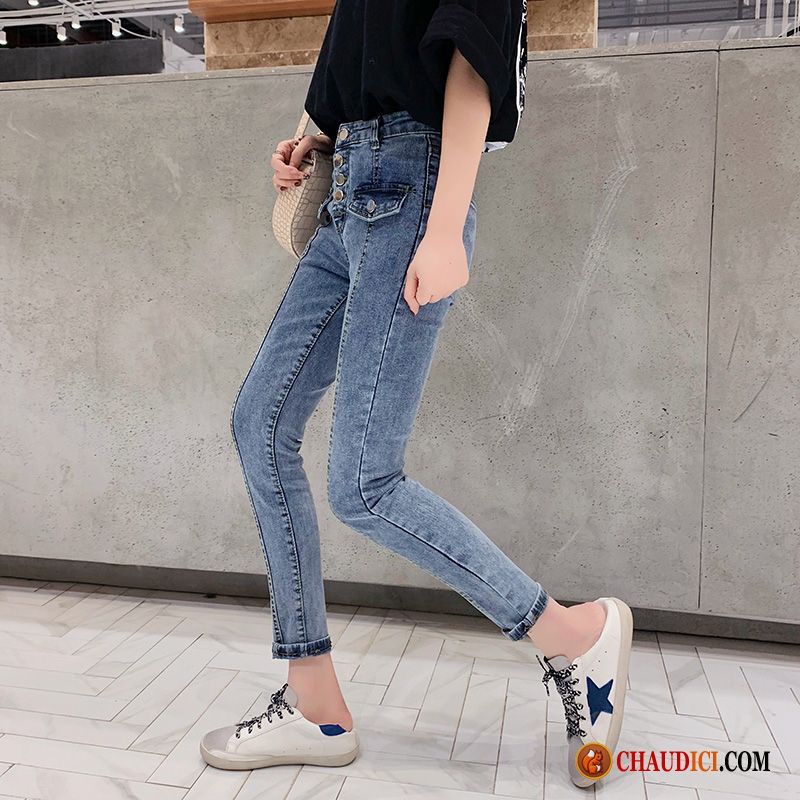 Jean Coupe Droite Femme Bleu Clair Maigre Pantalons Crayon Pantalon Femme Pas Cher