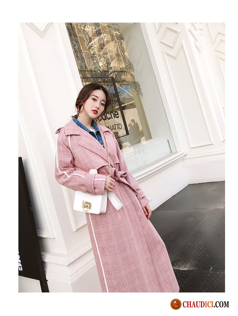 Manteau Mi Long Femme Pas Cher Vert Manteau Carreaux Longue L'automne Rose