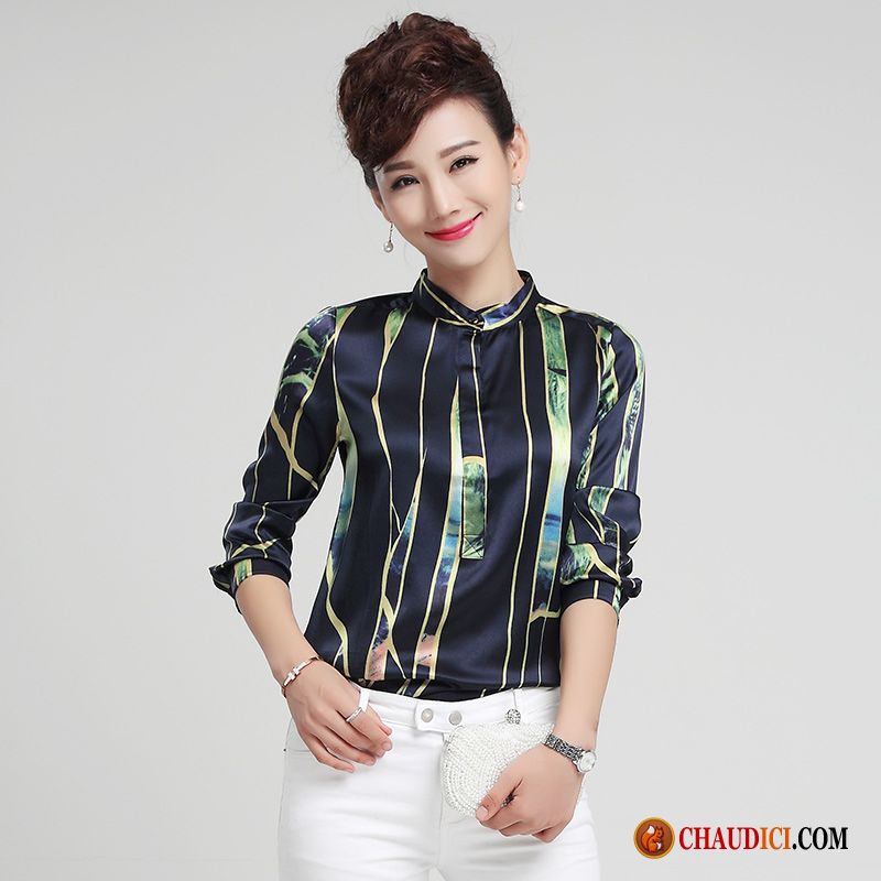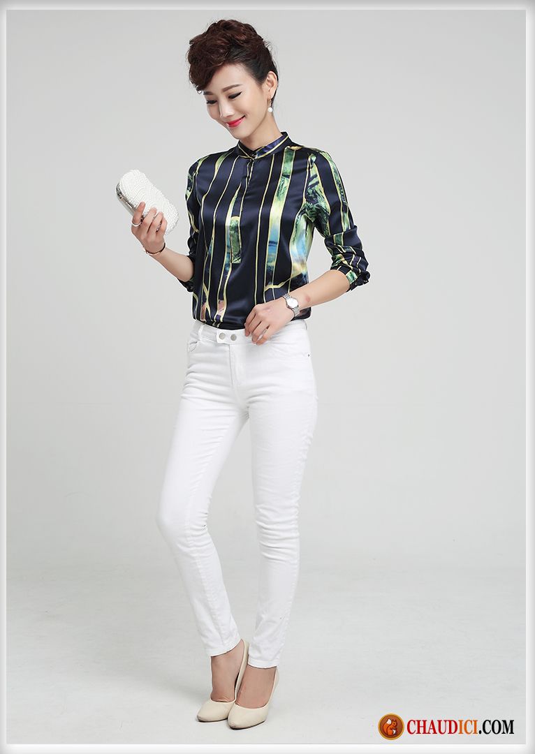 Model Des Chemisiers Femmes Longues Printemps Impression Soie Col Mandarin Pas Cher