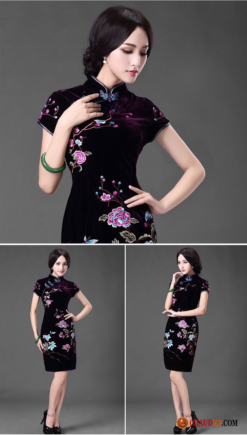 Robe Blanche Et Grise Classique Soie Rétro Robe Brodé Soldes