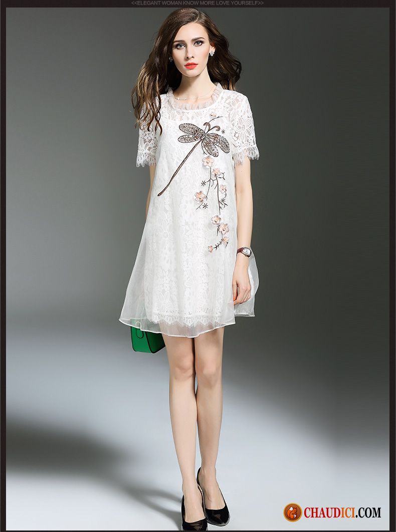 Robe Femme Pas Cher Robe Dentelle Col Rond Baggy Broderie