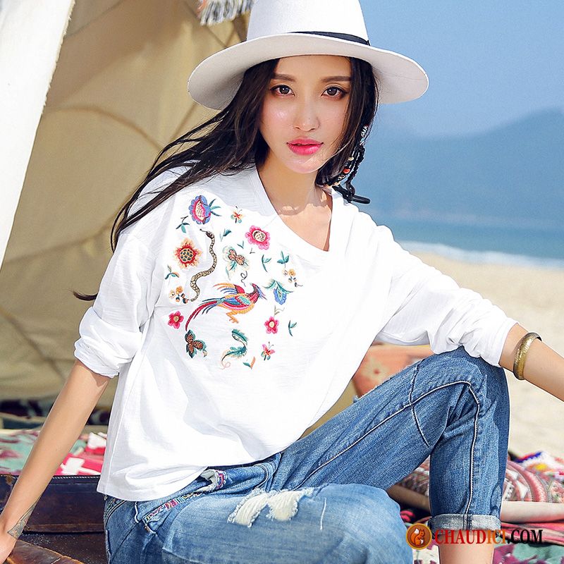 Tee Shirt Coton Femme T-shirt Perle Femme Une Veste Troués Pas Cher