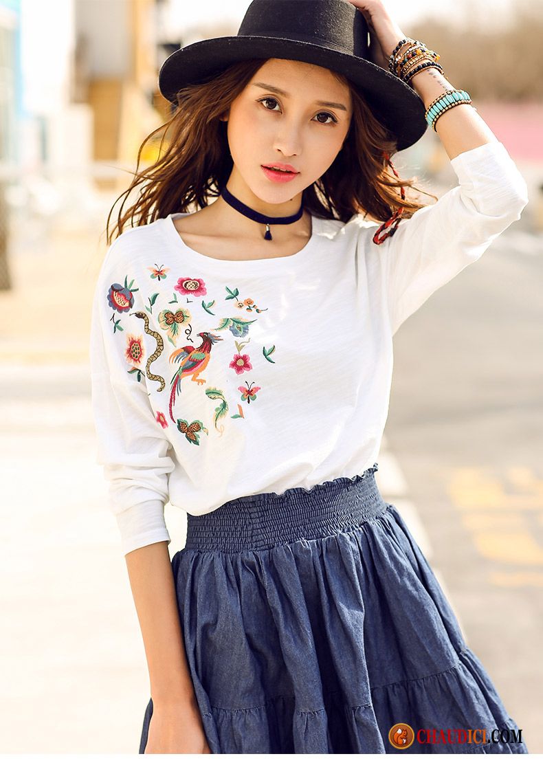 T Shirt Coton Femme Fleur Oiseau Une Veste En Maille Femme Pas Cher
