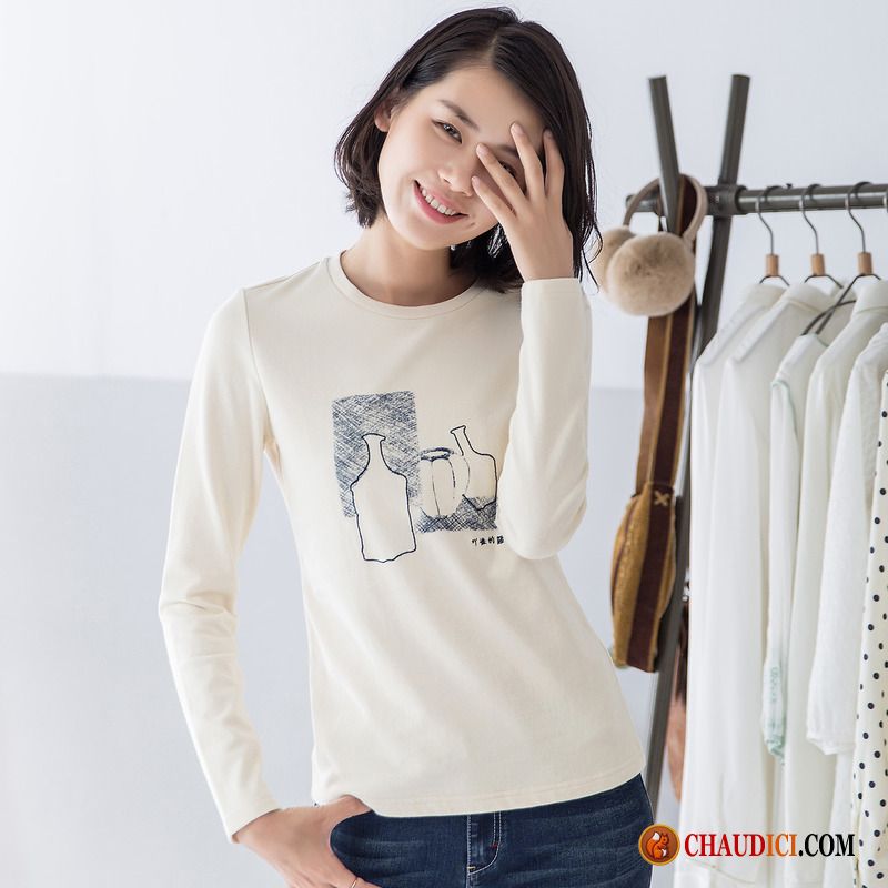T Shirt Femme Pas Cher Femme Art Longues Blanc Printemps