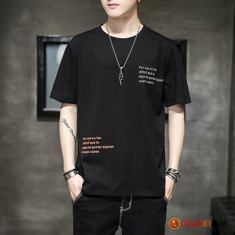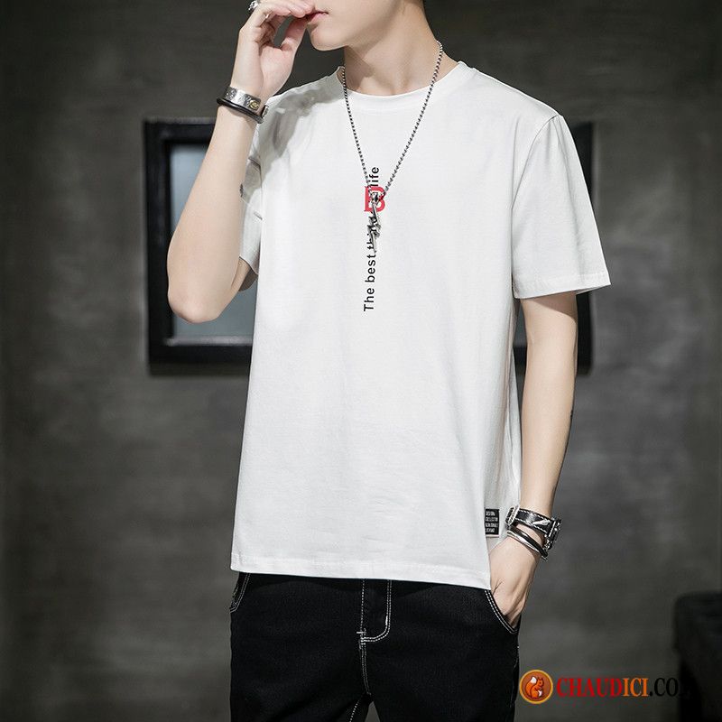 T Shirt Pas Cher Col Rond Homme Printemps Extensible Jeunesse