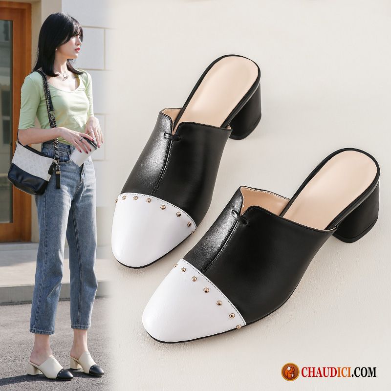 Pantoufle En Cuir Femme Plage Tongs Chaussons Outwear Talon Moyen En Ligne